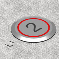 Vandal-proof, engraving enabled INOX pushbutton with Braille signs built in an additional sheet of the panel